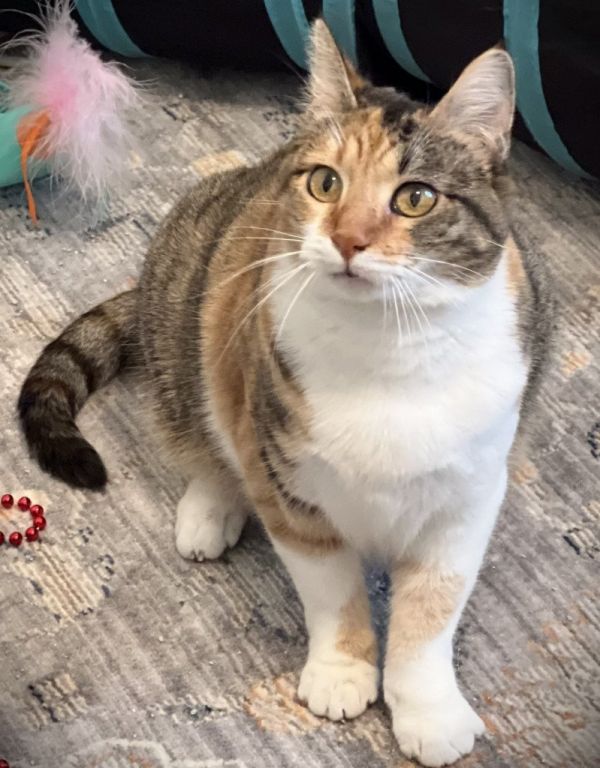 Annie is a Calico rescue cat for adoption in San Antonio Texas. Community Cat Adoption Program are fostered privately through foster homes. Fee for both is 150.